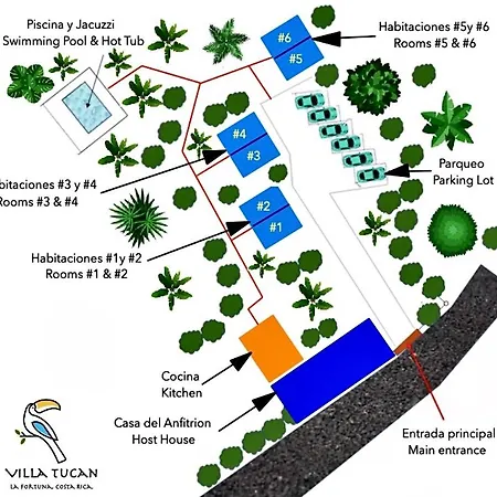 Hotellet Villa Tucan La Fortuna ligger inom 10 minuters bilresa från Arenal Natura ekologiska park. Det ståtar med solterrass och trädgård. Detta hotell ligger ungefär 25 minuters promenad från La Fortunas centrum.